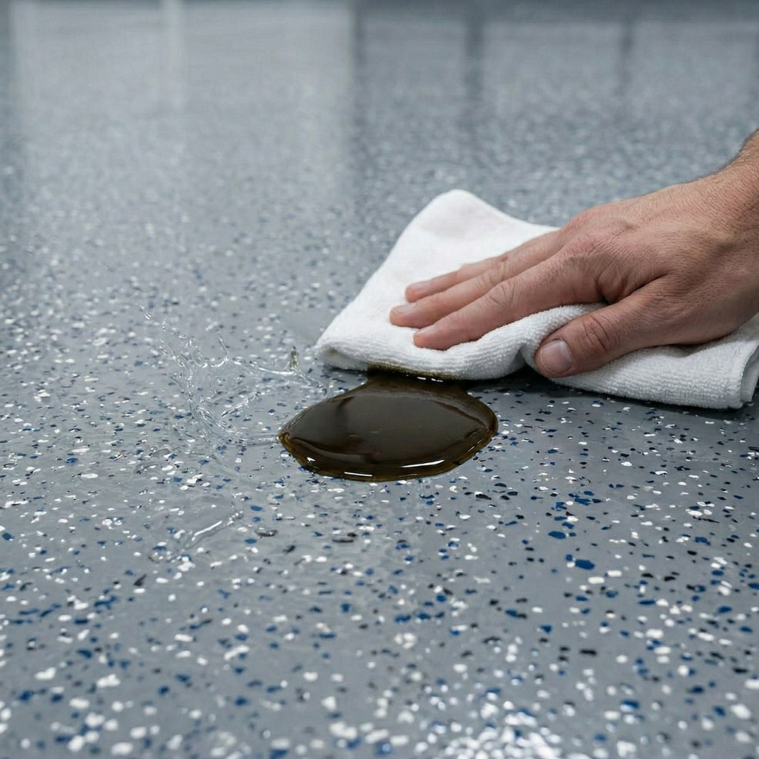 Garages are magnets for oil spills, brake fluid, and harsh road salt that eat away at bare concrete. Our high-quality epoxy flooring acts as a non-porous shield, making cleanup a breeze. Instead of permanent stains, you get a surface where spills sit on top, ready to be wiped away without damaging your beautiful investment.
